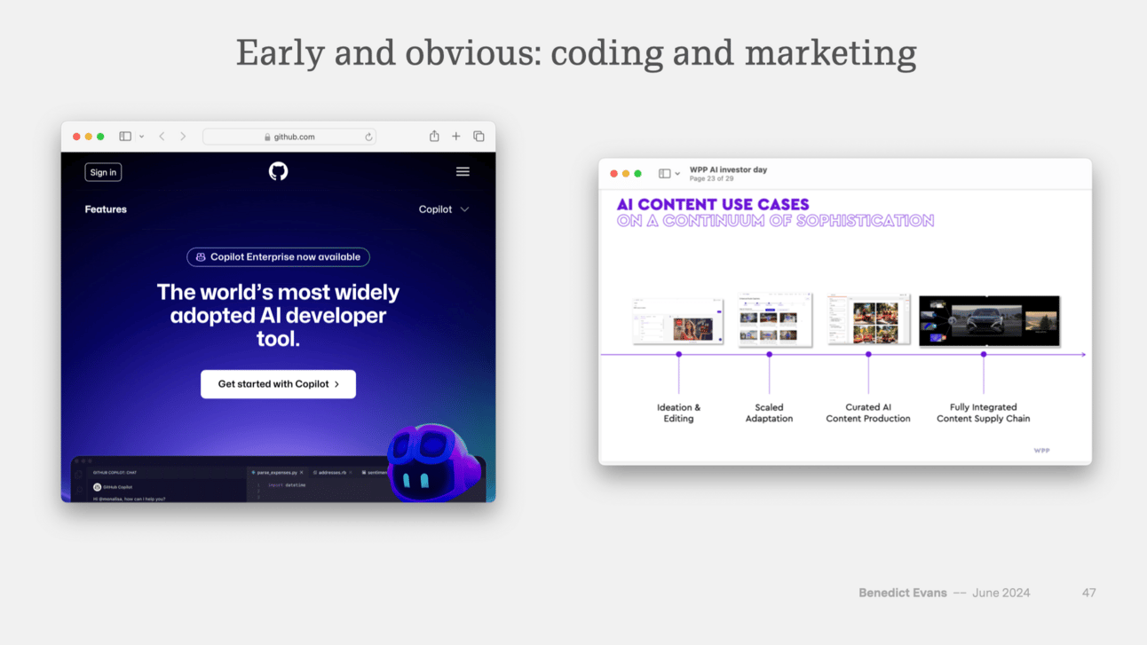 In the AI space, everyone's buzzing about what will be the first killer Gen AI app. Google and Microsoft have integrated large language models (LLMs) into their products, but this feels more like "bolt-on" AI. If I had the definitive answer, I'd be building it now!