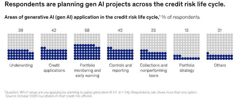Current Adoption: Financial institutions are increasingly implementing generative AI for client engagement, credit decision-making, and portfolio monitoring.
