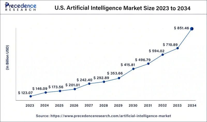 The U.S. market alone is expected to grow from $530 million in 2023 to $3.57 billion by 2033, as AI addresses staff shortages and enhances hospital management.