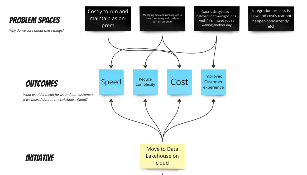 This method often brings up underlying assumptions that need validation. By surfacing these assumptions early, teams are better equipped to move into product discovery, helping avoid rushed implementations and ensuring that solutions align with true organizational needs.