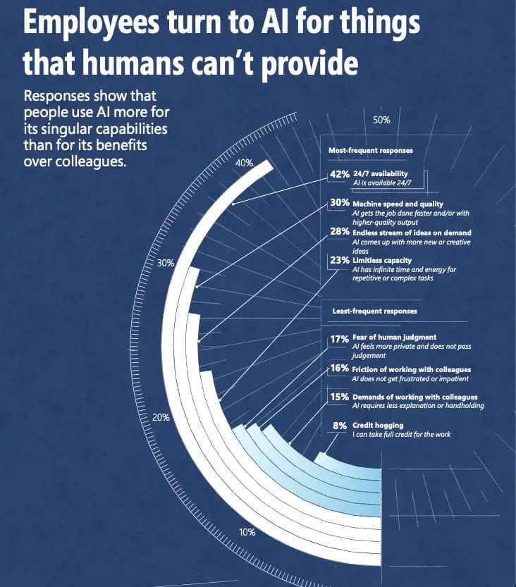• AI becomes structure: Org design must evolve to reflect human-agent teaming, fluid team formation, and output-based “Work Charts”